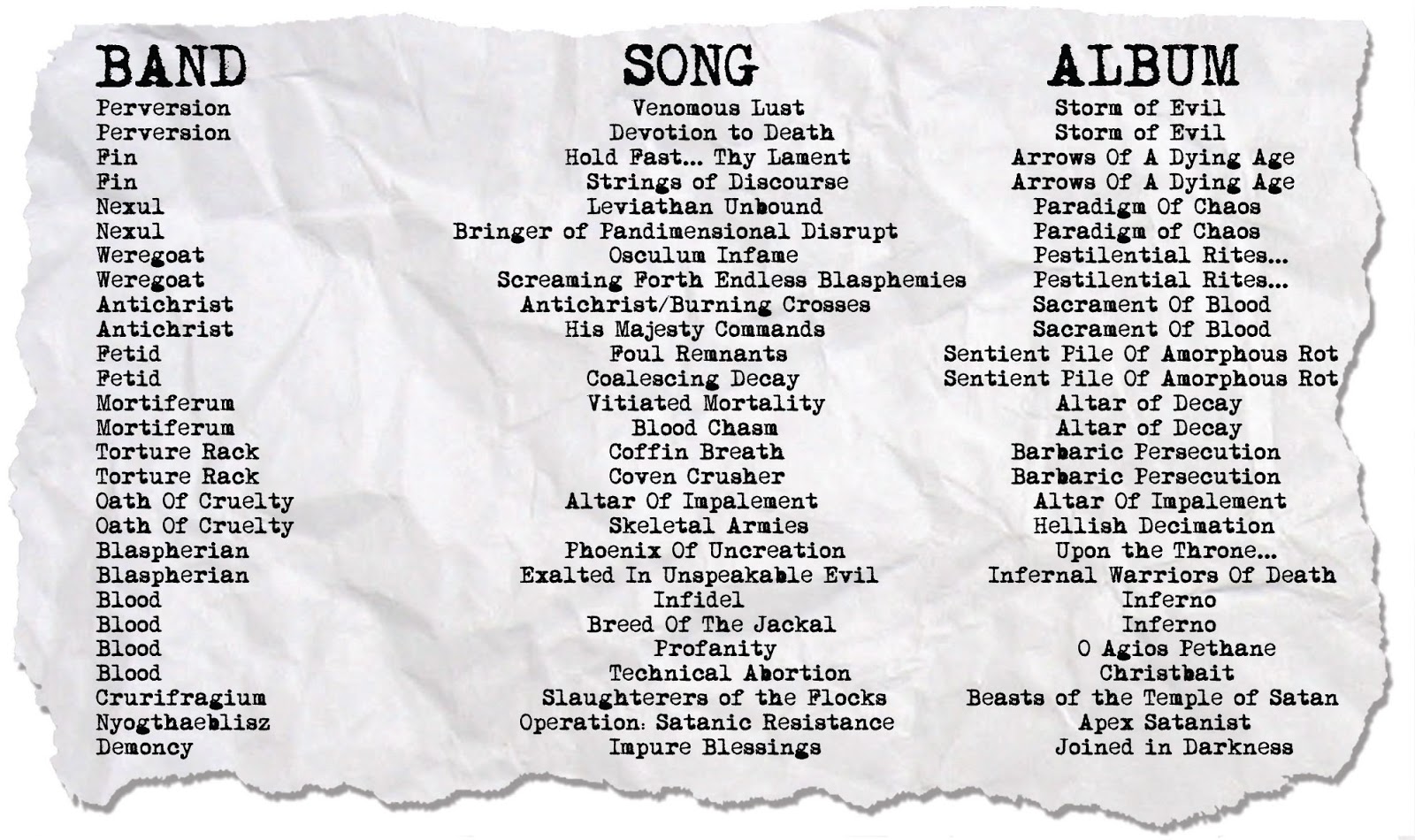 It’s that time again! We headed to Seattle to see Blood and a bunch of other killer bands at the Hording of Evil Vengeance Festival! We also got loaded and distracted and stuff (The Undertaker had to play a set), so there’s twice as many songs played as we called out. Please refer to the playlist below for reference, or go to Hell! We don’t care!